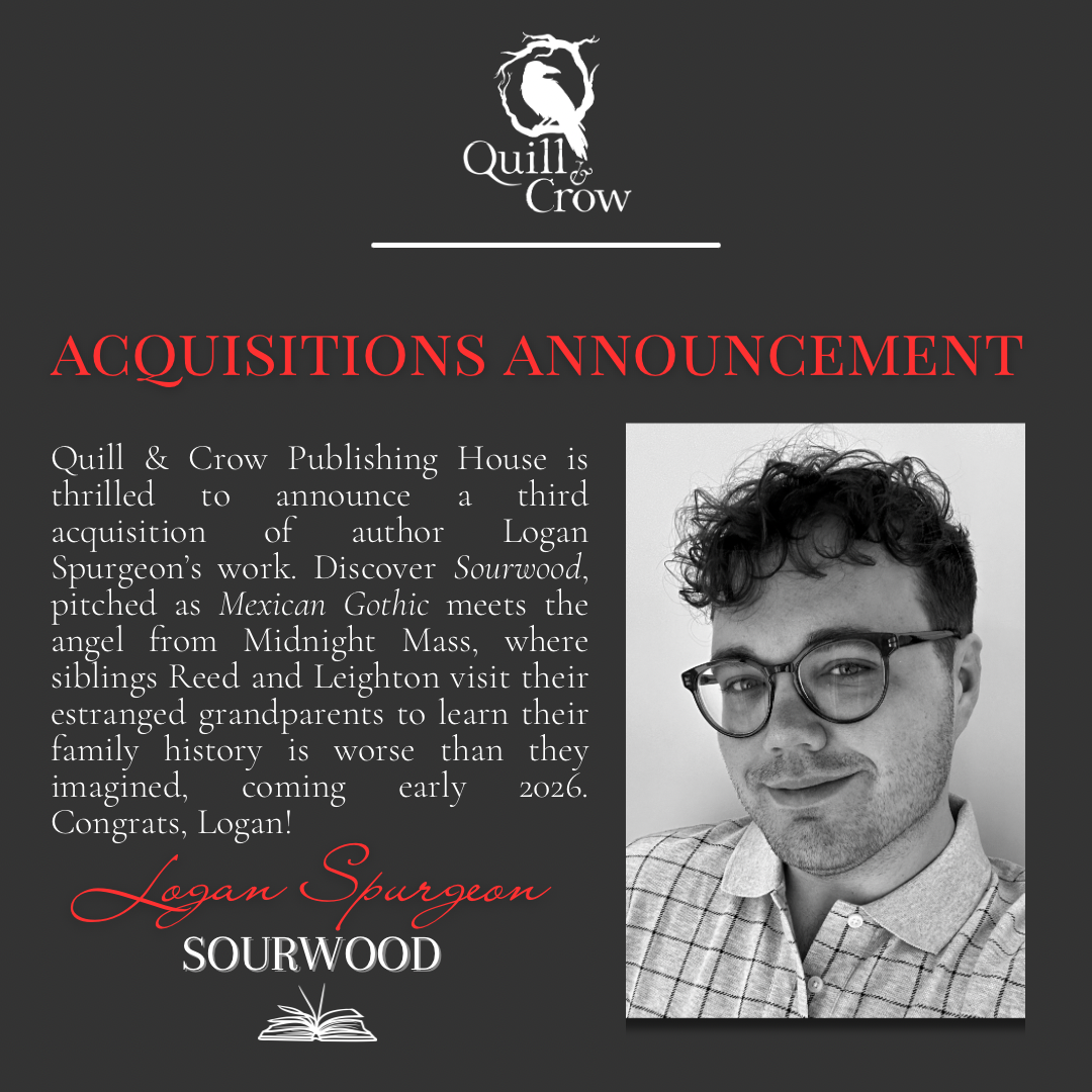 “Quill & Crow Publishing House is pleased to announce the acquisition of Logan Spurgeon’s literary horror novel, Hinterland, coming winter 2025. Congrats, Logan!”